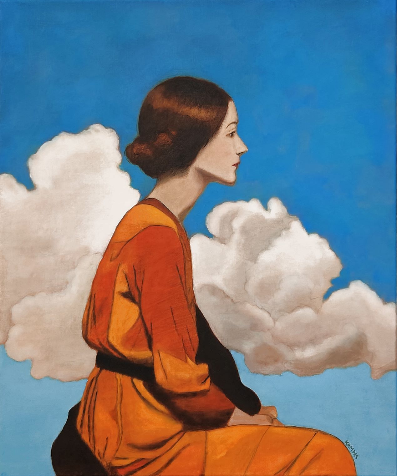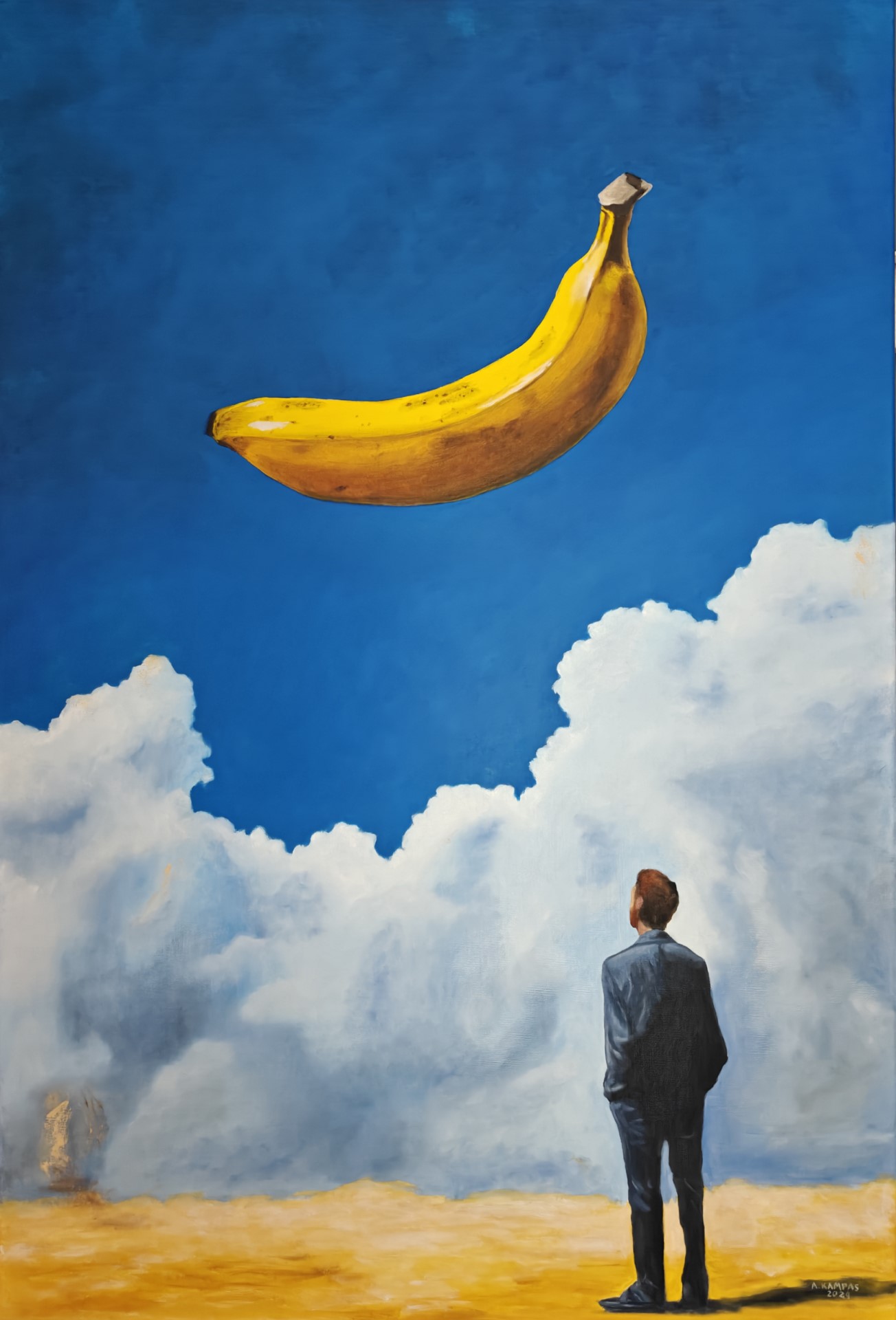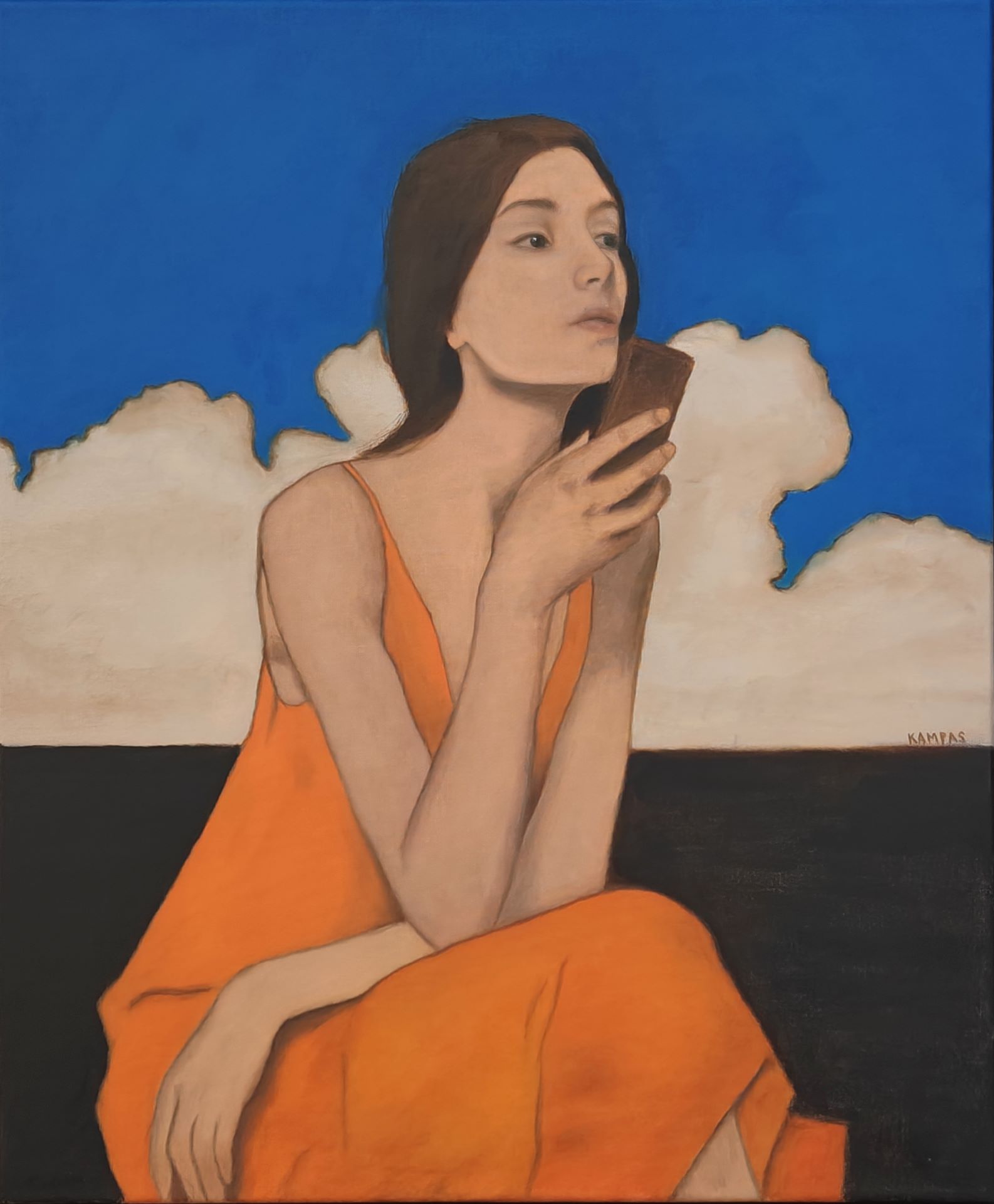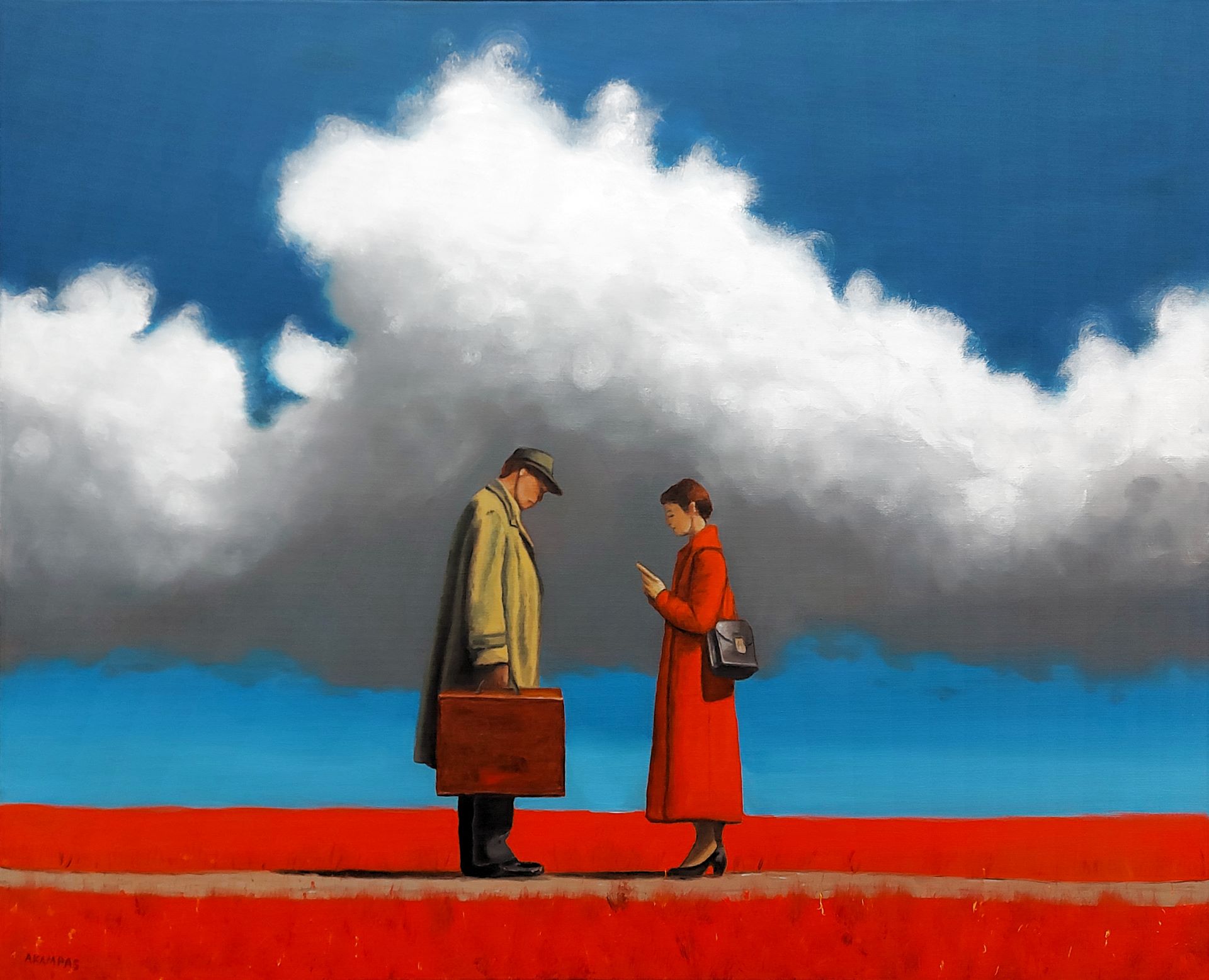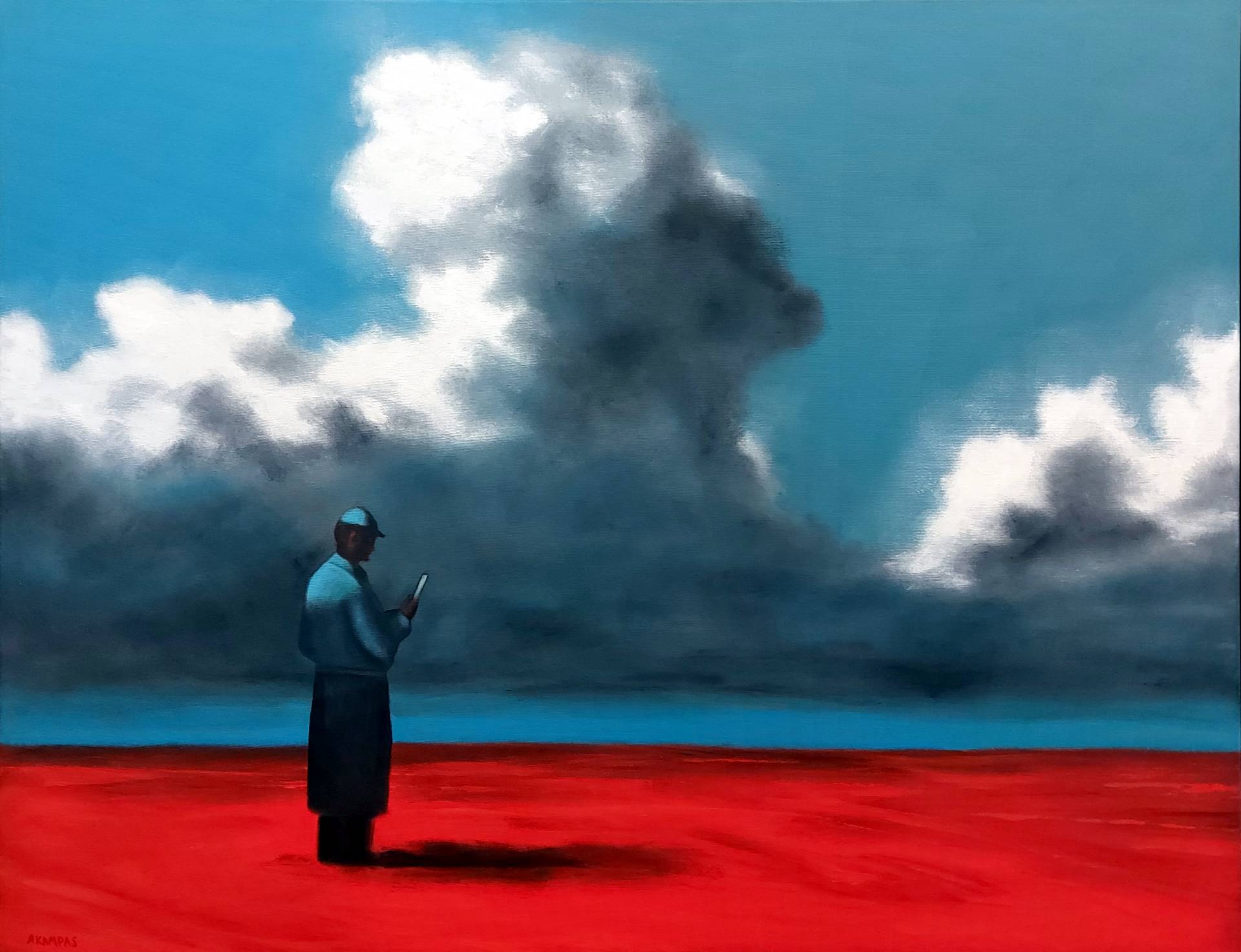 Aris Kampas is a Denmark-based painter working primarily in oil on canvas, blending surrealism and figurative realism in works that explore the complex relationship between humans and their surroundings.