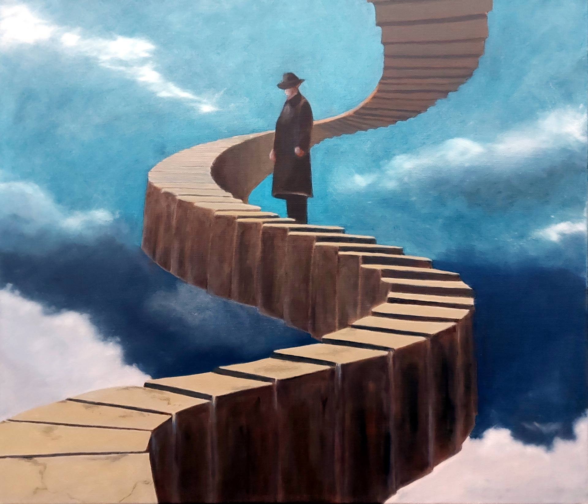Originally experimenting with acrylics six years ago, he soon turned to oil for its depth, richness, and slower drying time, allowing him to work in layers without rushing. Influenced by early 20th-century art movements yet always evolving, his paintings range from tightly rendered compositions to looser, more expressive passages.